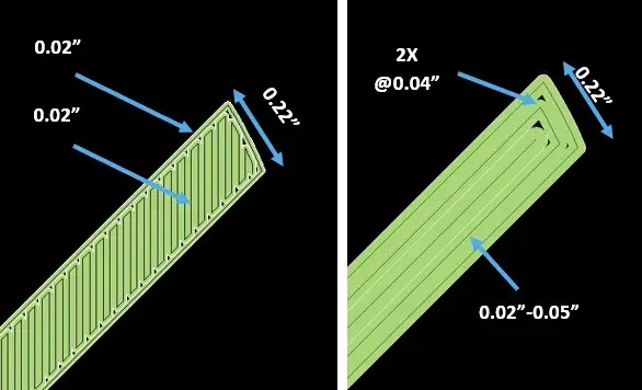 | Čvršći alati | Šire putanje = više međuslojnog kontakta = manja poroznost |